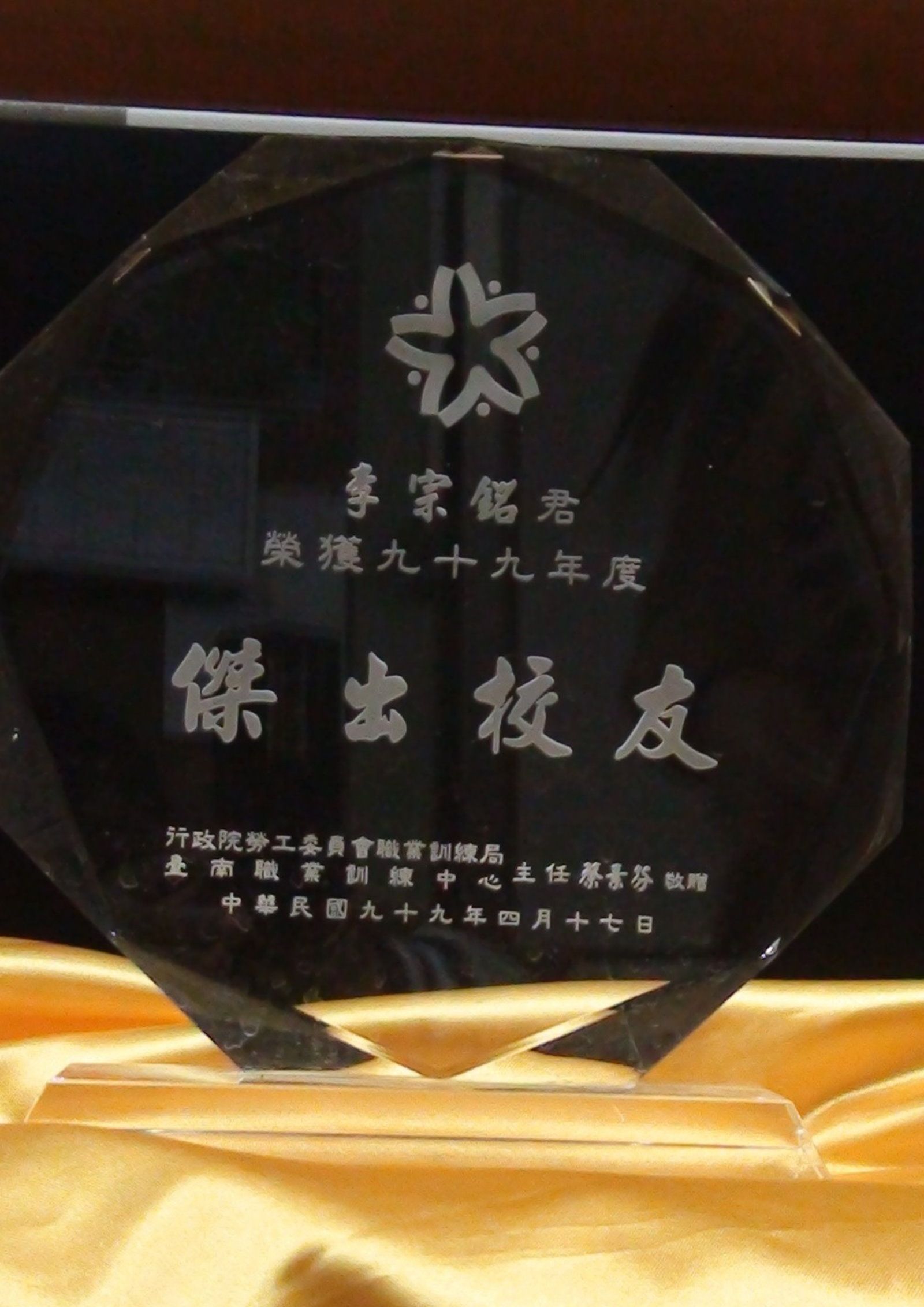 在16年前從淨化環境,到野放養殖無毒台灣鯛{養水、養草(土攘淨化)又養鳥(生態),就是沒養魚(無生產)},至今已花費千萬養殖廉價的【吳郭魚】鄰居眼中的『了尾ㄚ子』(敗家子)。從養殖白癡到台灣鯛養殖標竿,習藝烹調創造二百多道台灣鯛料理成為台灣鯛料理達人,100年獲聘總統府國宴主廚,獲頒【台灣之光】的殊榮。在這艱辛的20年歷程,顯示宗銘的一股毅力與堅持,不僅養出全國最頂級的『台灣鯛』,更精益求精學習廚藝,將台灣窮人家的魚,遙變成國宴料理,創造精緻鯛魚美食,現在成為鄰近漁民眼中的學習榜樣, 宗銘不僅嚴苛要求與學習,挑戰自我,創造產業新契機,更奉獻經驗與技藝分享,延續傳承教育,產業結盟、協助社區發展,促進社區觀光永續發展。宗銘常自許安慰『憨人也有驕傲的一天』。