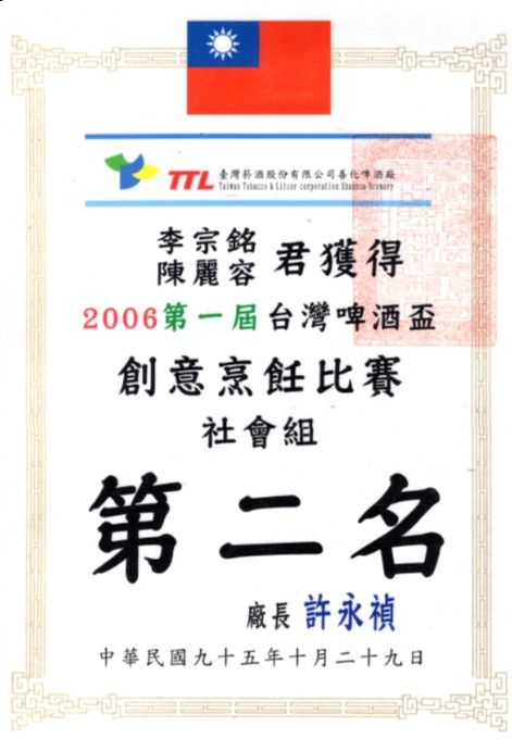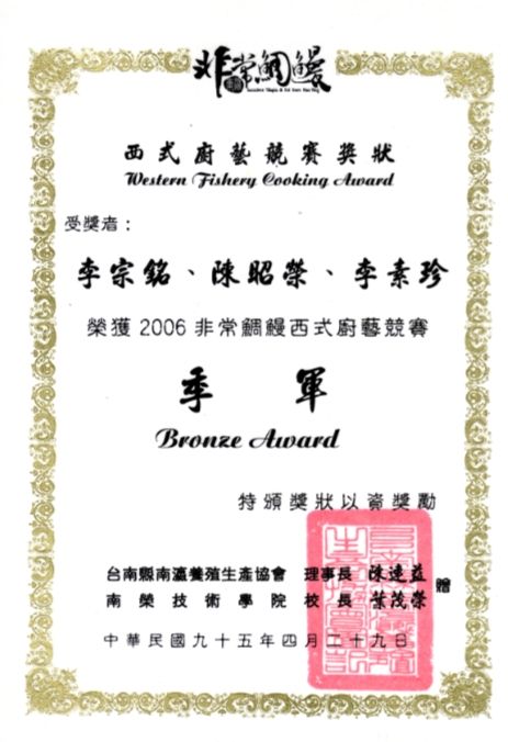 96/9 獲聘陳前總統 水扁先生宴會主廚